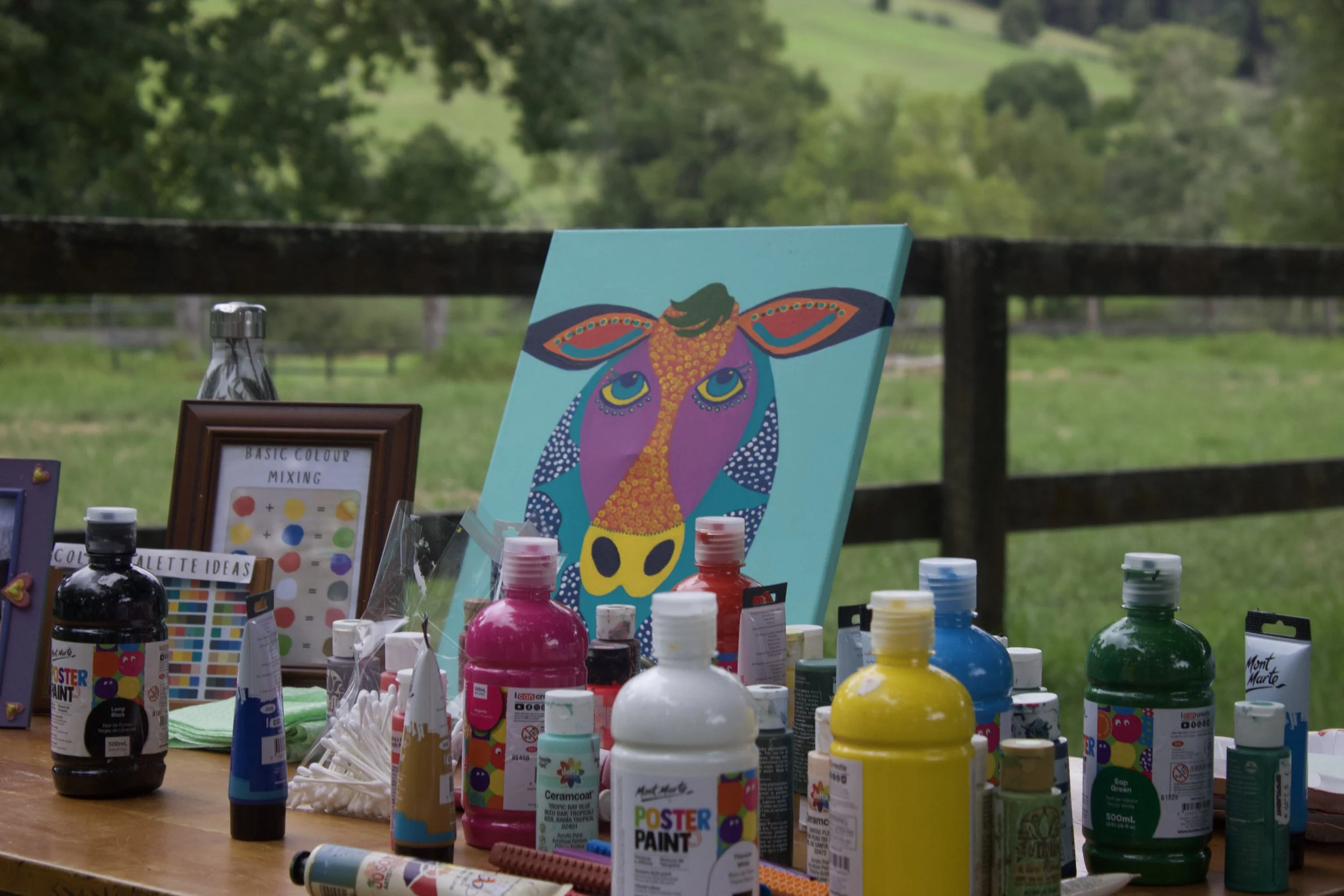 Guided Painting Session – After your time with the cows, we’ll gather under the shade of trees for a relaxed painting workshop. A professional artist will guide you step-by-step to create your own canvas inspired by these gentle beings. No prior art experience required — just your curiosity and caring heart.