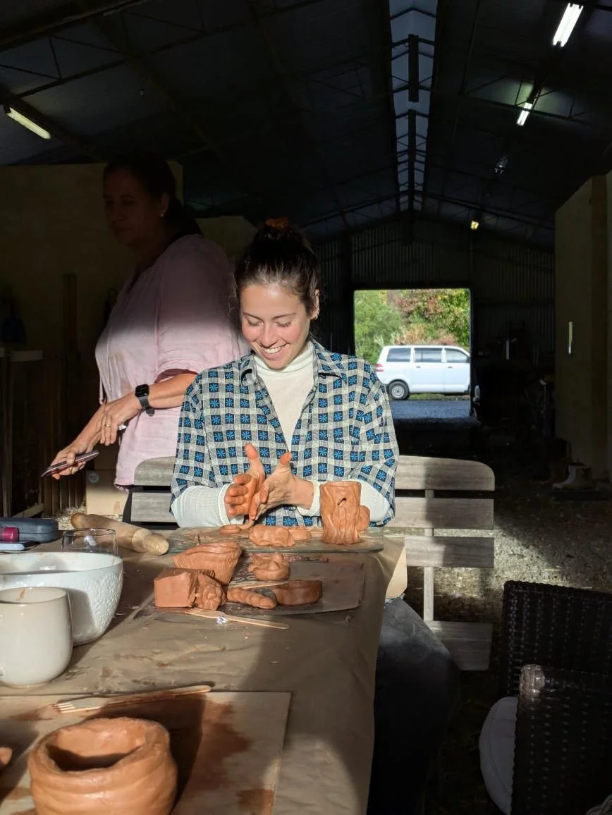 Creating earthy coil pots (or anything your creativity leads you to) with clay provided.